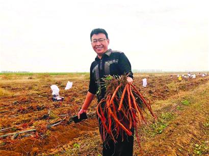 去年秋天到了收獲季,收購商現場一看,表示丹參前期缺水,產量沒有提上來,這樣賣了賺不了多少錢。趙學濤急了,不是說耐旱的草藥嘛?姜書逸幫著聯系咨詢種植專業戶了解情況?!澳秃狄驳孟仍赂判??!痹瓉?,去年春天村里少雨,井里也沒水,趙學濤就將就著把苗“干”種了下去,導致丹參前期扎根晚,生長慢?!斑@可咋辦?”人家表示,沒事讓丹參再長一年,明年再賣賺得多。轉眼一年過去,不少去年看著趙學濤鬧“笑話”的村民來到田里見證今年的收獲。一簇一簇粗細均勻的橘色丹參在陽光下很是漂亮,每畝3000多元的純收益更是讓人興奮?!斑@次信服了,比過去地里沒多少收益強多了。”“苗子多少錢一棵?”“今年能賺多少錢?”村民們看到實實在在的收益,摩拳擦掌、準備來年試一試。
