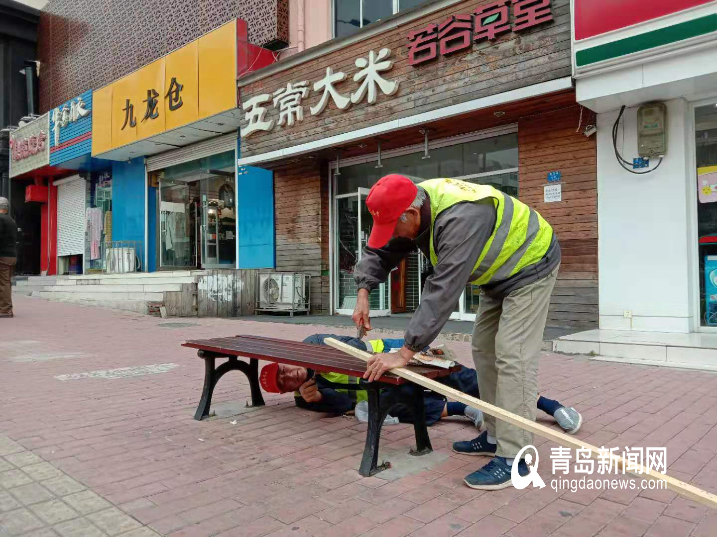 青島新聞網11月5日訊 (通訊員 齊一瑋)“今天路過鎮江路15號,看到兩位市民街長趴在地上維修路邊損壞的休息椅,向他們表示感謝……”近日,一位居民在社區群里發了這樣一段話和照片,張片上兩位頭發斑白的老人,正在維修路邊的休息椅。他們正是太平鎮社區兩名老黨員72歲賈明千和70歲楊知來。
