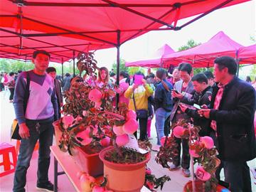 “盆景蘋果擺放在家里,不僅消費者感受種植樂趣,美化居室環境,還能采摘品嘗,自然受到消費者的喜愛。今年,我培育的1000多盆蘋果盆景已經售出了一半,預計年收入達30余萬元?!彼搴憔f,除了培養蘋果盆景,他還培育出葡萄、梨、桃、李子、杏、柿子、山楂、紅棗和櫻桃等十多種水果盆景。下一步,應不少客戶的需求,他打算打造流動式果園,水果盆栽除了當做盆景銷售外,還可以直接運輸到一些采摘園、商務場合和節會現場,市民采摘品嘗完后,再運回基地繼續培育。另外,他還打算建冷庫和大棚,通過科技手段干預,錯時讓水果盆景上市銷售。