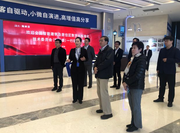 2019年11月13日,住房和城鄉建設部信息中心原副主任、全國智標委秘書長王毅,全國智標委副主任委員馬虹、全國智標委行業應用中心主任趙瀅一行調研了青島海爾“海納云”科技服務有限公司。
