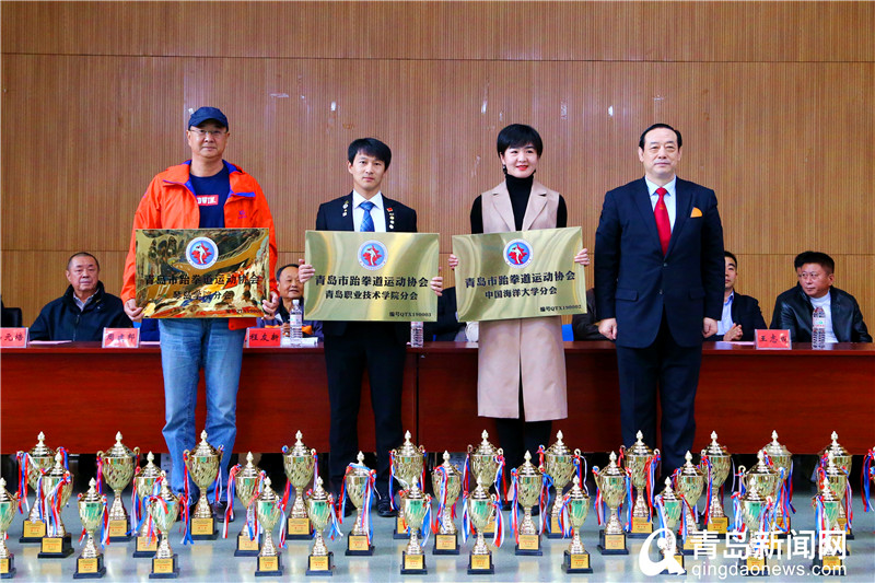 青島市跆拳道運動協會以本屆體育大會為主題,于賽前舉辦了首期青島市跆拳道運動協會法律講堂和裁判員培訓班。其目的是切身服務青跆協會員單位,為協會會員單位普及法律知識、提供法律咨詢,今后將不定期舉辦圍繞項目特色所開展的相關法律知識講解。在比賽開幕式中,青島市跆拳道運動協會會長徐殿平為首批青島市跆拳道運動協會分會——中國海洋大學、青島理工大學琴島學院、青島職業技術學院授牌。青跆協依據協會章程,自今年起逐步在全市各高校建立青島市跆拳道運動協會分會。使青島市跆拳道運動更規范、有序的發展。