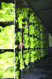 在故鄉農產的廠區里采訪,發現占地最多的還是冷庫。企業相關人員介紹說,白菜等好多蔬菜都是季節性產品,冷庫里存放的多是青島本地的大白菜 等蔬菜。因為這個季節生產的白菜口感最好, 而企業需要一年四季都生產泡菜,因此現在除生產泡菜外,還在存儲大量的白菜等,以適應 一年的生產。以白菜為例,一天需要3萬斤,一 年的白菜需求最約為5000噸,也就是約一千萬斤。這么大的需求量,必須要有冷庫支持。目前企業建成了3000多噸的冷庫,如果生產量再大,還要加大面積。
