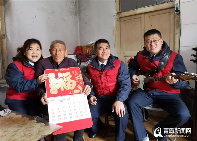 下午,志愿者們又一起走進嶗山區金家嶺街道王家村社區,陪伴空巢老人過冬吃餃子,陪伴他們度過歡樂時光。在89歲的曲方平大爺家,大家各自分工忙的不亦樂乎,剁菜,調肉餡,包餃子,為的就是讓老人家早點吃上熱乎乎的餃子。俗話說;冬至的餃子,夏至的面,吃了餃子不凍耳朵,曲大爺笑哈哈的告訴志愿者,你們工作又冷又累,多吃餃子不受凍。熱氣騰騰的餃子出鍋,曲大爺品嘗著美味水餃直夸味道好,之前就吃三個四個餃子的他,一口氣吃了七八個,志愿者還為老人送上了新年掛歷,摸著掛歷上紅紅的福字,曲大爺感慨時間流逝的真快,一眨眼間又要過年了。志愿者孟珂告訴曲大爺又為他預訂了全年的老年生活報,老年生活報可是曲大爺的“忠實伴侶”。這是志愿者團隊連續五年為老人訂報紙了。志愿者徐明和丁曉彈起心愛的吉他,同曲大爺唱起老人那個時代的歌曲。