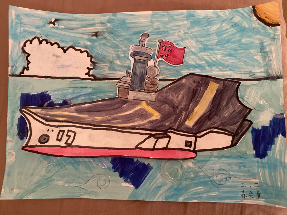 蘇會童:通過學習,我知道了山東艦是我國第一艘自主研發的國產航空母艦。作為一名山東的少先隊員,我感到無比驕傲和自豪!我想對解放軍叔叔說:親愛的解放軍叔叔,謝謝你們帶來和平,我要向你們學習堅強、不怕困難的精神!