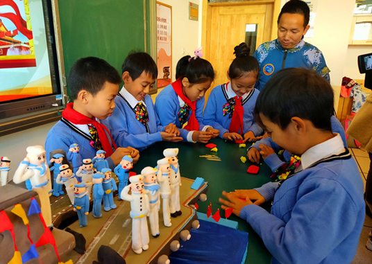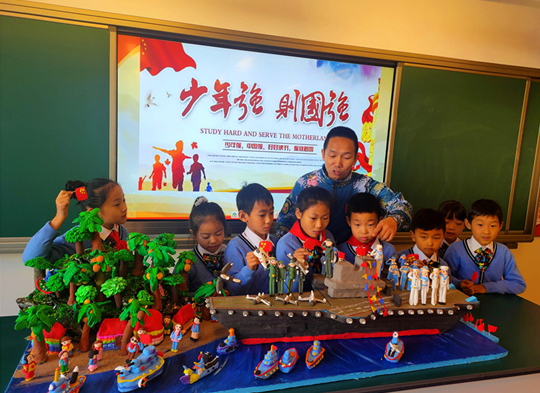 結合學校特色課程——面塑,隊員們通過自己動手制作航母上的飛機等模型,了解到我們的國防軍事,培養了愛國情感,這既是一次傳統文化體驗,也是一次愛國主義教育。”