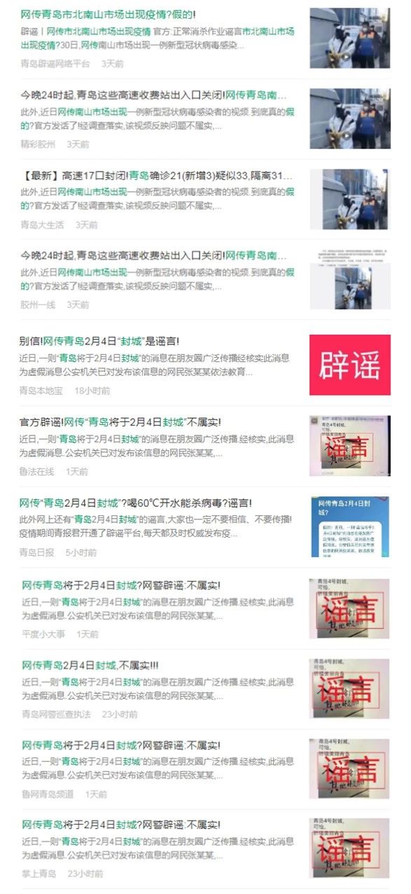 “辟謠!網傳青島公交停運,不屬實!”“辟謠!網傳2月4日青島封城不屬實!”……自新型冠狀病毒感染的肺炎疫情發生以來,青島自媒體主動配合政府各部門積極辟謠,有效阻止了謠言的傳播。