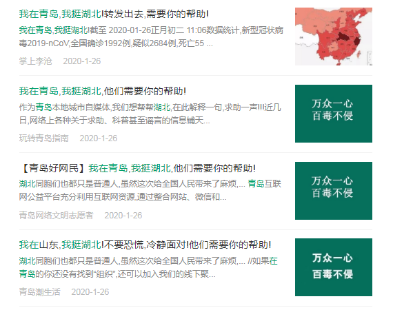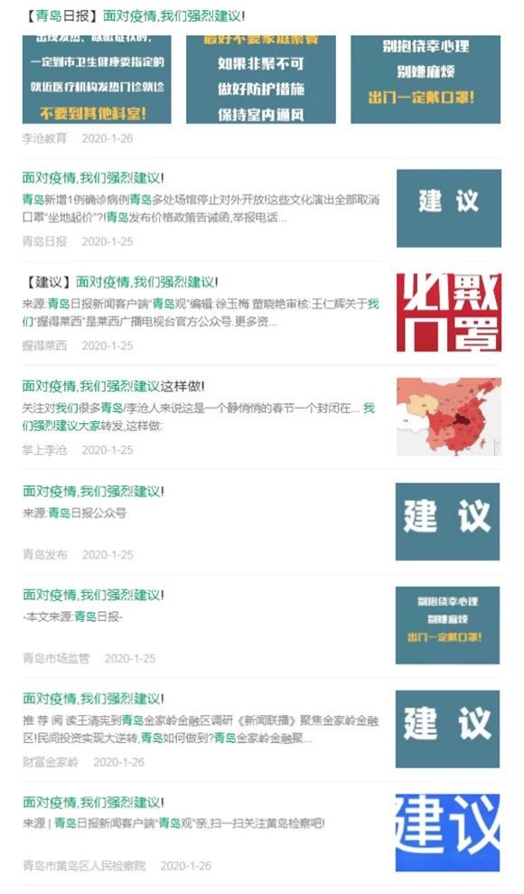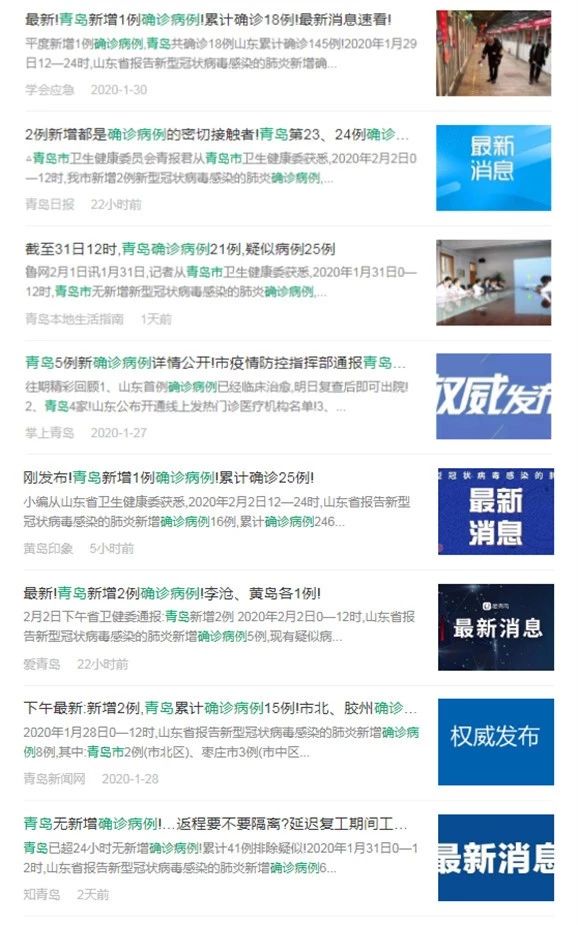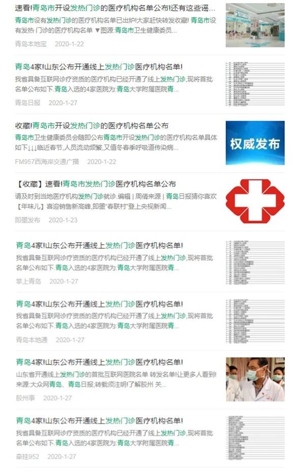 疫情發生后,青島市衛生健康委官網發布青島市定點救治醫院名單,青島自媒體紛紛利用各自平臺,及時發布青島發熱門診、醫療救治定點醫院名單,及時幫助疑似病例盡早得到救治。