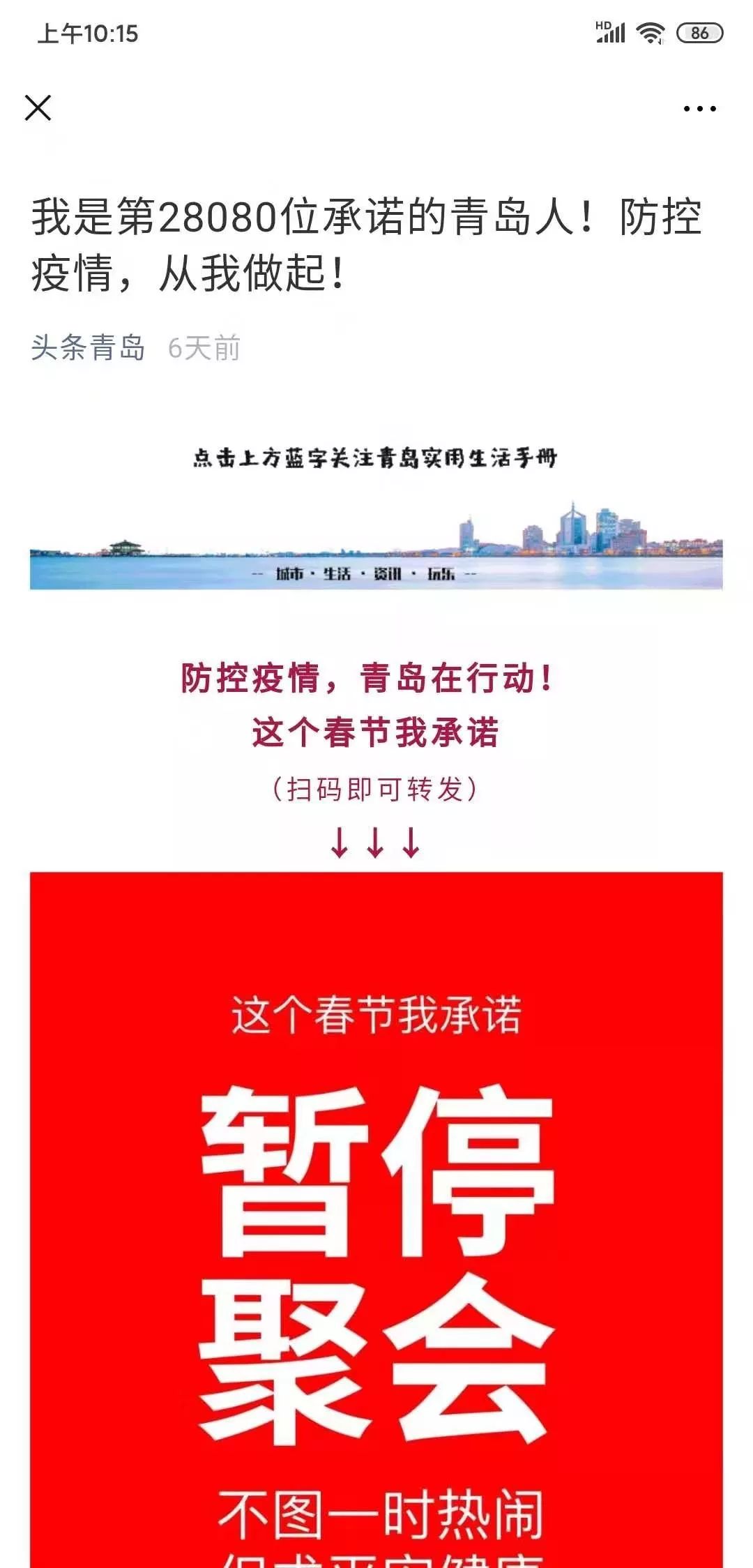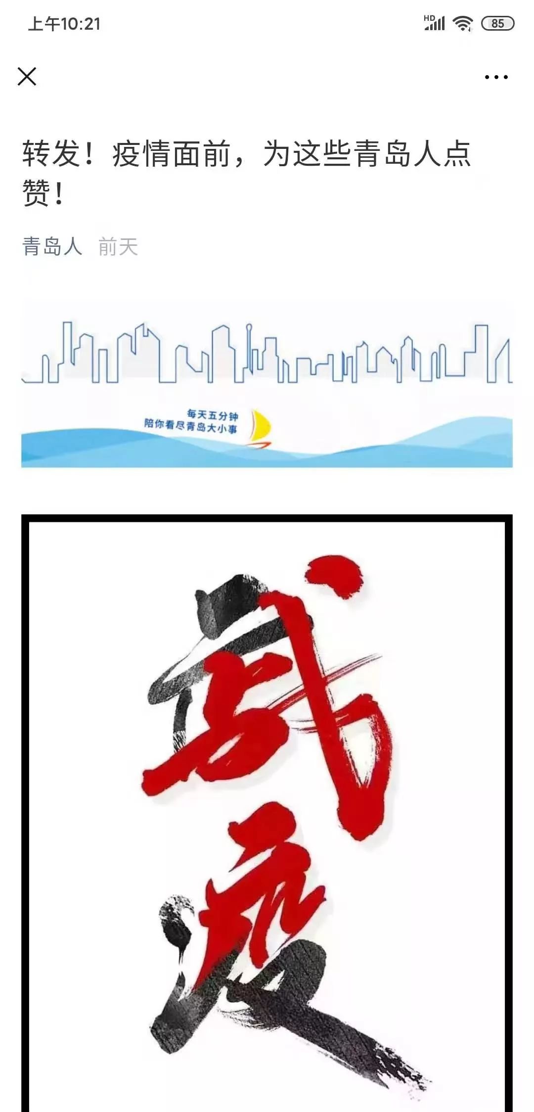 在抗擊疫情這場戰役里,除了堅守在一線的工作人員,我們還看到了自媒體人的責任和擔當,積極發聲,同頻共振,創新傳播形式,貢獻力所能及的力量,讓大家切實感受到青島城市溫度。沒有一個冬天不會過去,沒有一個春天不會到來,加油!