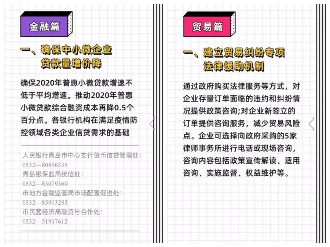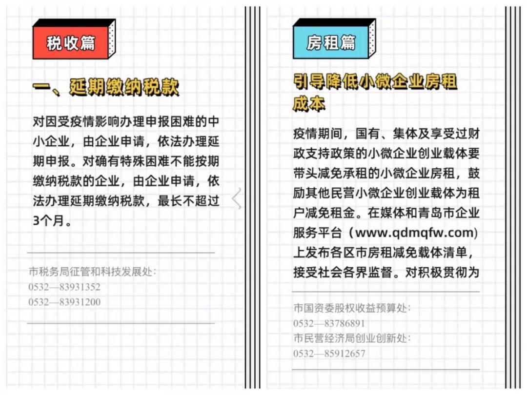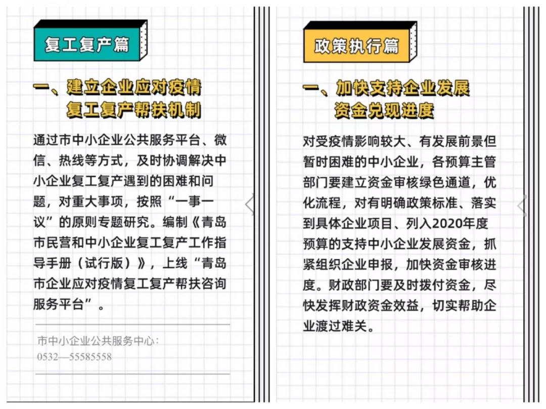 青島新聞網 2月14日訊 以青島市惠企18條政策為發端,面對疫情沖擊,青島快速行動,一系列新政策、新方案不斷細化,形成了“18+N”的政策體系,幫扶企業復工復產,保生產穩經營。政策涵蓋用工、稅收、房租、金融等領域,并附相關部門聯系方式,“一冊在手”方便企業及時獲取信息。
