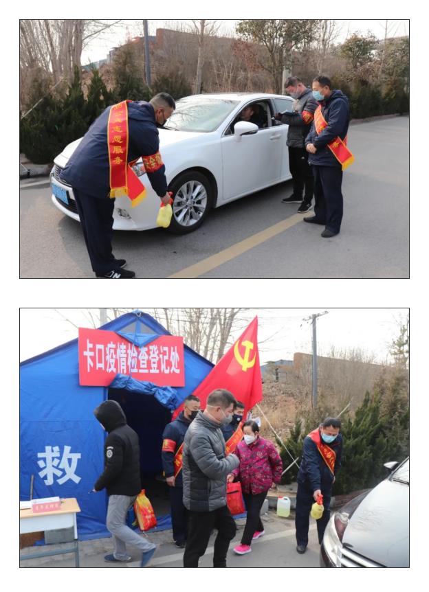 黨員志愿者來(lái)到社區(qū)的黨員示范崗檢查站,逐戶(hù)排查有無(wú)武漢接觸史,深入宣傳科普勤洗手、少出門(mén)等科學(xué)防疫知識(shí)。志愿者們幫助來(lái)往社區(qū)居民做好實(shí)名登記、測(cè)量體溫并記錄,對(duì)車(chē)輛進(jìn)出時(shí)間及緣由做詳細(xì)問(wèn)詢(xún)、記錄,同時(shí)對(duì)車(chē)輛進(jìn)行消毒、對(duì)車(chē)內(nèi)所有人員進(jìn)行登記,勸導(dǎo)行人盡量減少不必要的外出,避免走親訪(fǎng)友。