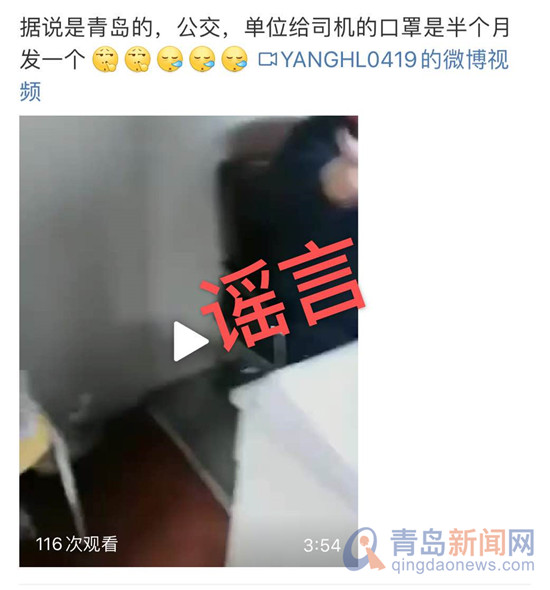 青島新聞網(wǎng)2月28日訊(記者 丁淑華)近日,一段視頻在島城部分市民的微信朋友圈流傳,視頻拍攝者聲稱自己作為一線公交駕駛員,單位配發(fā)1個口罩要求自己佩戴14天。對此,青島公交集團(tuán)28日下午公開辟謠:視頻內(nèi)容與事實(shí)嚴(yán)重不符,是謠言!對散布謠言者將保留依法追究法律責(zé)任的權(quán)利。