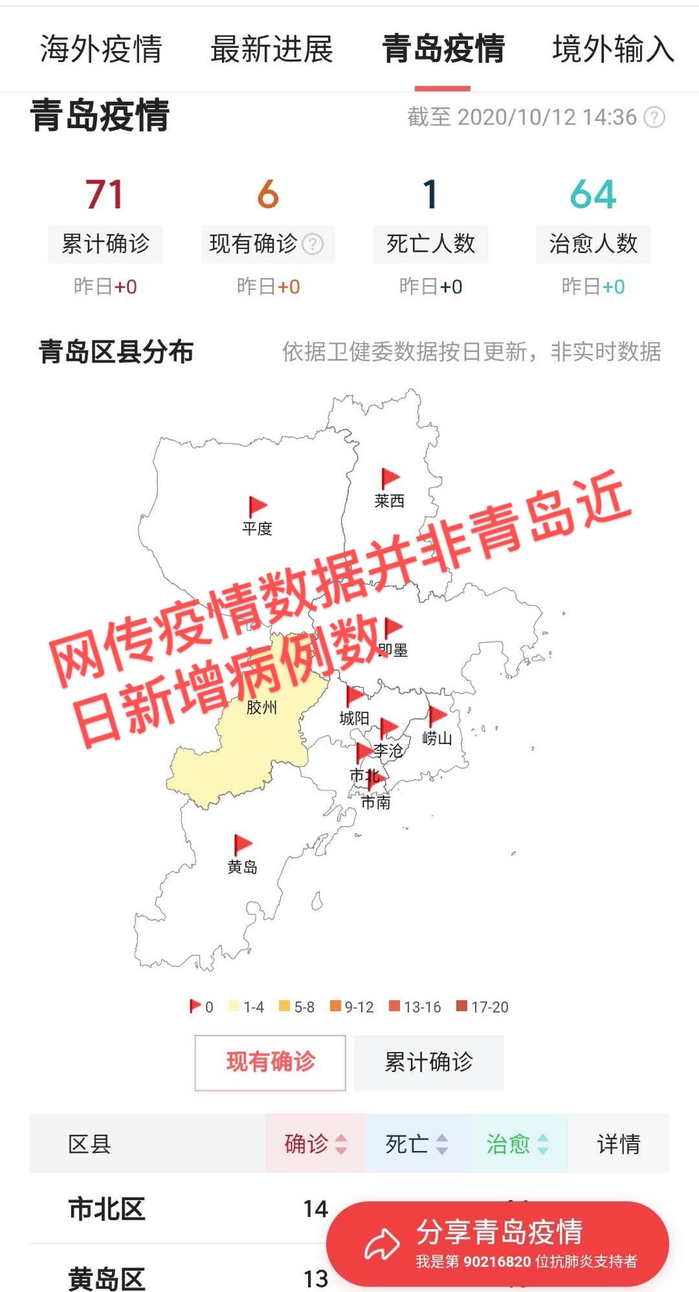 今天,幾張有關青島疫情的數據圖表在朋友圈流傳,有圖表中顯示青島累計確診71例,不少人誤以為是本次疫情的數據。經查證,累計71例是年初疫情爆發以來青島的確診總量,并非本次疫情的確診數量。