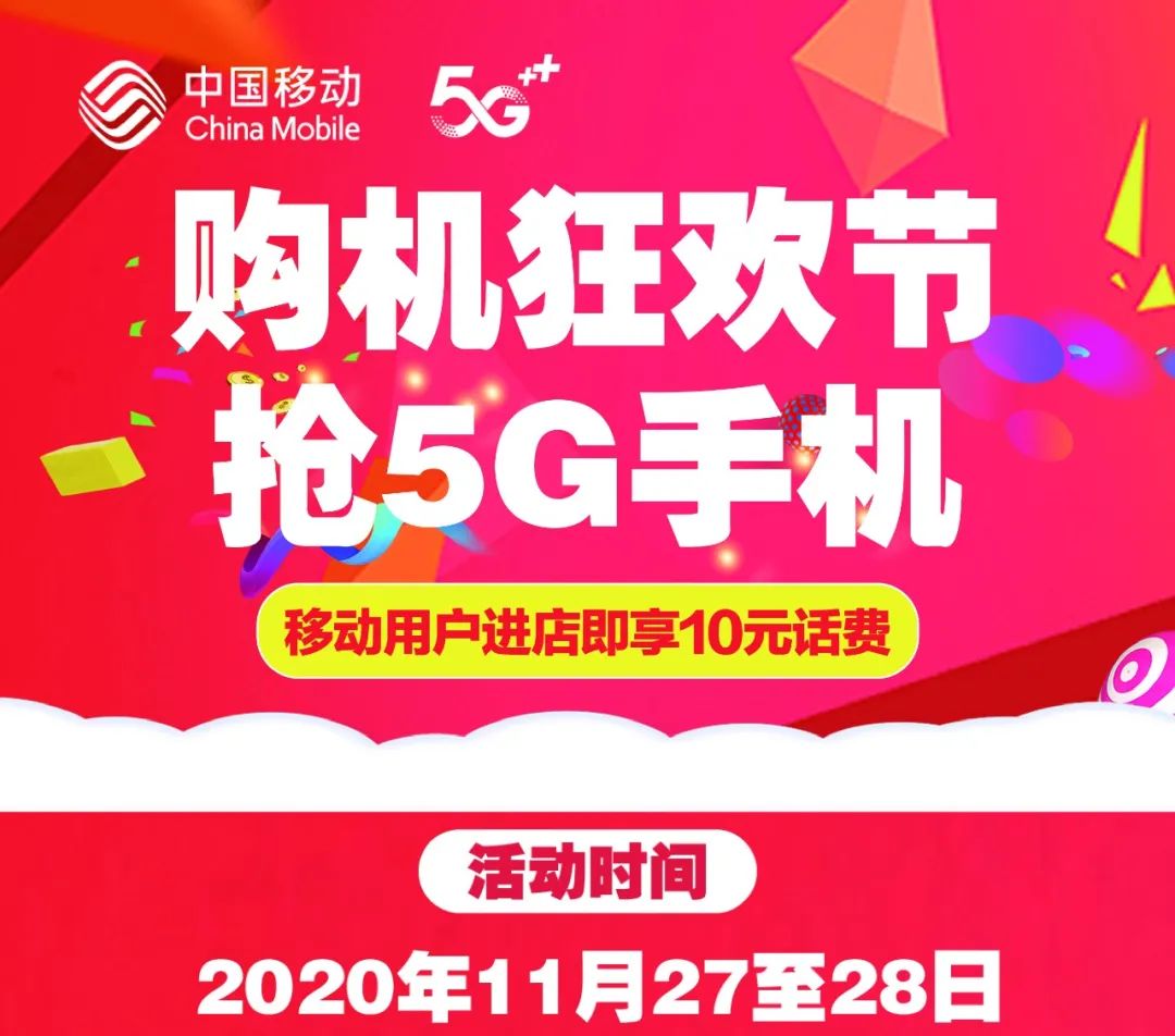 購機狂歡節,搶5G手機!進店享10元話費~