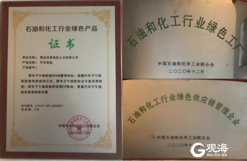12月7日,2020年石油和化工行業(yè)綠色發(fā)展大會(huì)舉行。會(huì)上公布了《2020年度石油和化工行業(yè)綠色制造名單》,青島雙星輪胎工業(yè)有限公司獲評(píng)“石油和化工行業(yè)綠色供應(yīng)鏈管理企業(yè)”,公司旗下轎車子午線輪胎DH08夏季輪胎等5款輪胎產(chǎn)品被認(rèn)定為“石油和化工行業(yè)綠色產(chǎn)品”。同時(shí),雙星集團(tuán)旗下河南伊克斯達(dá)再生資源有限公司獲評(píng)“石油和化工行業(yè)綠色工廠”。雙星也因此成為唯一一家同時(shí)入選“2020年度石油和化工行業(yè)綠色制造”三大榜單的企業(yè)。