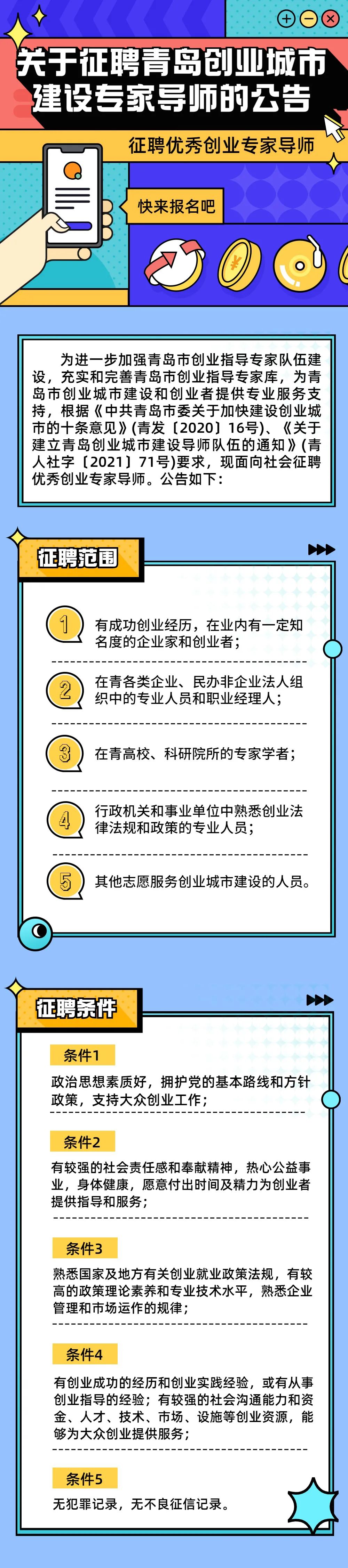 青島市面向社會征聘優秀創業專家導師,即日起開始報名