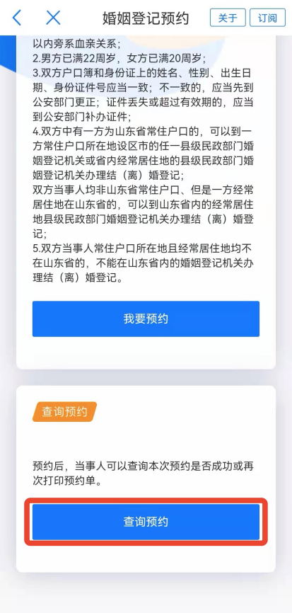 預(yù)約后,可在結(jié)婚登記頁(yè)面查詢預(yù)約(詳見圖5)。