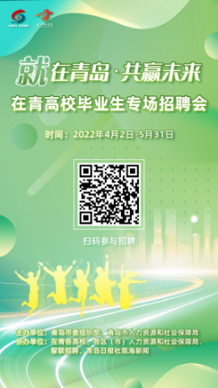 掃描活動海報二維碼進入“‘就’在青島·共贏未來”在青高校畢業生春季專場招聘活動主頁,點擊“云招聘”-選擇“綜合類專場招聘會”-搜索“職位”,參與招聘活動投遞簡歷。
