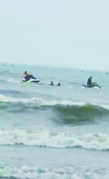經過多方聯系了解,記者找到了參與救人的兩位沖浪愛好者,他們是北浪沖浪俱樂部的會員色川浩市和伊藤公平,兩位都是日本人,來青島定居多年,每天都會到俱樂部換衣服、拿板、下海沖浪。7月2日下午,兩人也像往常一樣去石老人浴場玩板,突然間聽到有人大聲呼救,“兩輛摩托艇無法實施救援,我當時距離事發海域只有20米左右,就坐著沖浪板去找孩子,想讓他上我的沖浪板,但他拒絕接受幫助,還繼續往海里游,”伊藤公平告訴記者,“當時海浪非常大,我說這樣下去你會淹死的,慢慢地幫助他冷靜了下來,后來朋友色川浩市和另一位救人者也來了,我們一起通過沖浪板把他救了出去。”