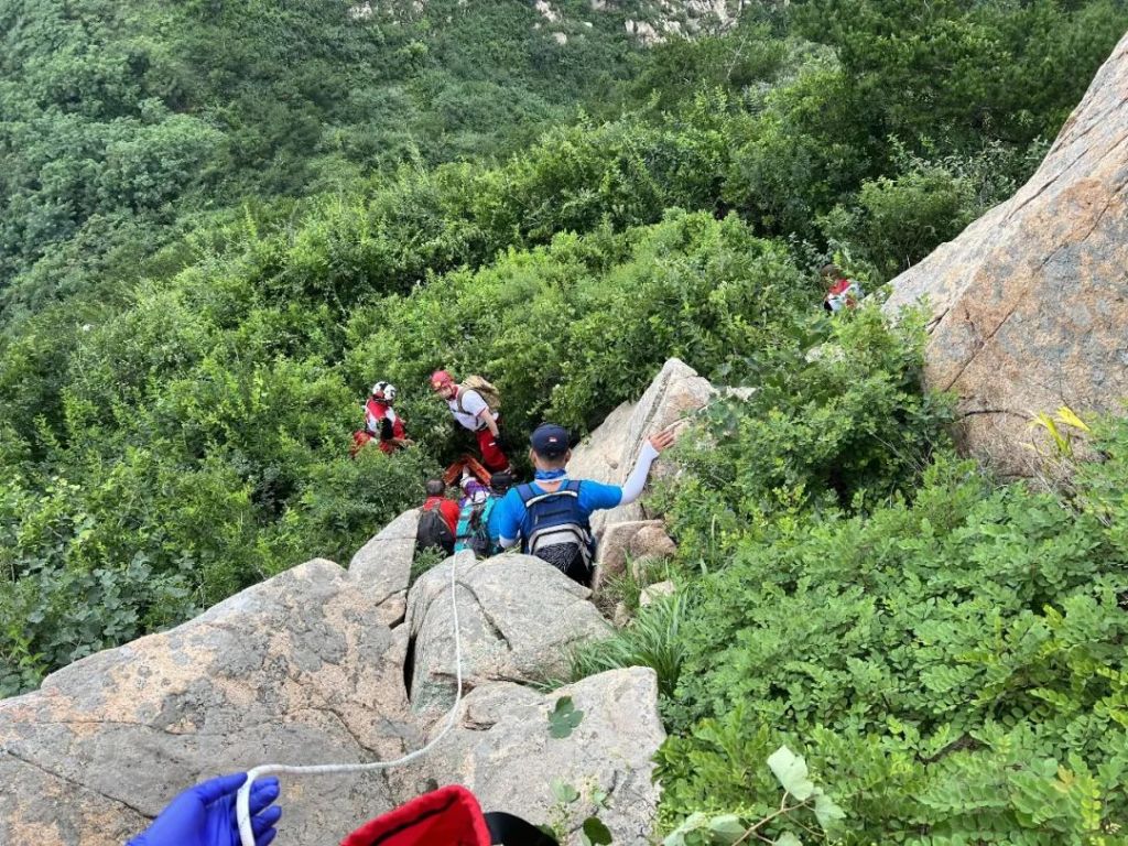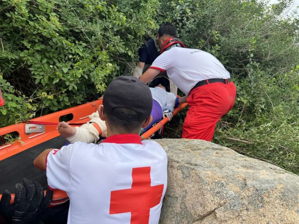 2022年7月3日上午10時16分,平度紅十字藍天救援中心接驢友電話求救,老龍灣風景區裕風頂附近有人受傷急需救援,救援隊快速啟動應急響應機制,攜帶醫療裝備、繩索、擔架等山地救援裝備向事發區域集結。當天上午11時7分,救援隊員到達老龍灣,指揮部現場研判首先出動無人機迅速鎖定傷者位置并引導隊員登山,并根據現場情況下達第二梯隊結集指令。