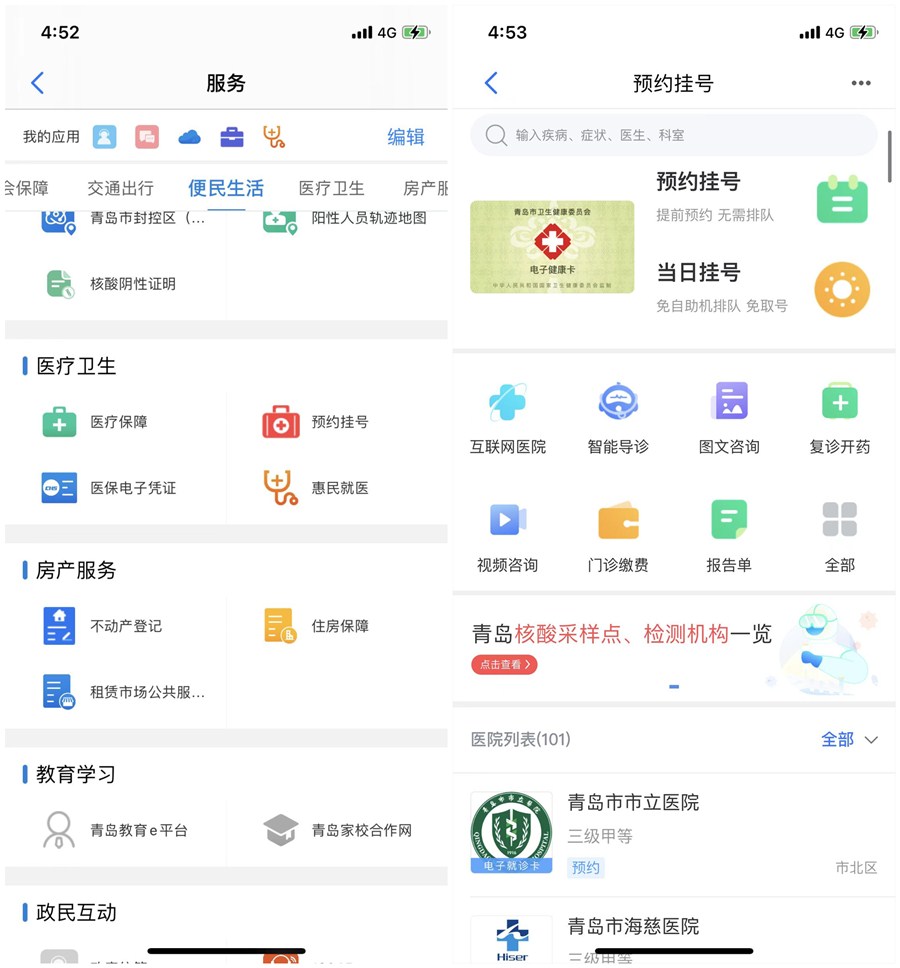 “愛山東?青e辦”推出的這項功能就解決了這一痛點。為了持續優化患者就醫體驗、優化就診流程、縮短患者等候時間,“愛山東?青e辦”推出預約掛號服務,專區涵蓋全市101三甲醫院,整合了14項常用模塊,包含預約掛號、智能導診、復診開藥、門診繳費、住院報告、就診記錄等,向市民群眾提供便捷的就診相關服務。