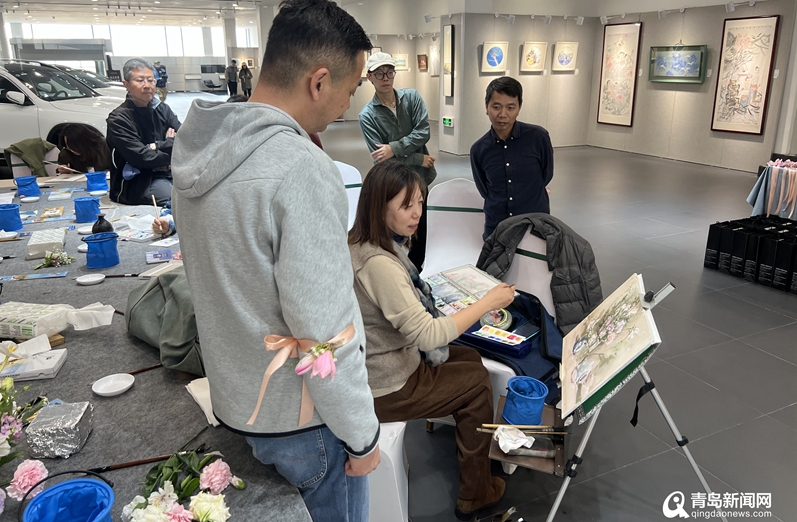 當天活動,山東水彩畫會理事袁琳老師進行了現場寫生創作演示,一幅花卉靜物作品色彩明麗、栩栩如生。畫家熟練的繪畫技巧也是讓觀眾大飽眼福、受益匪淺。