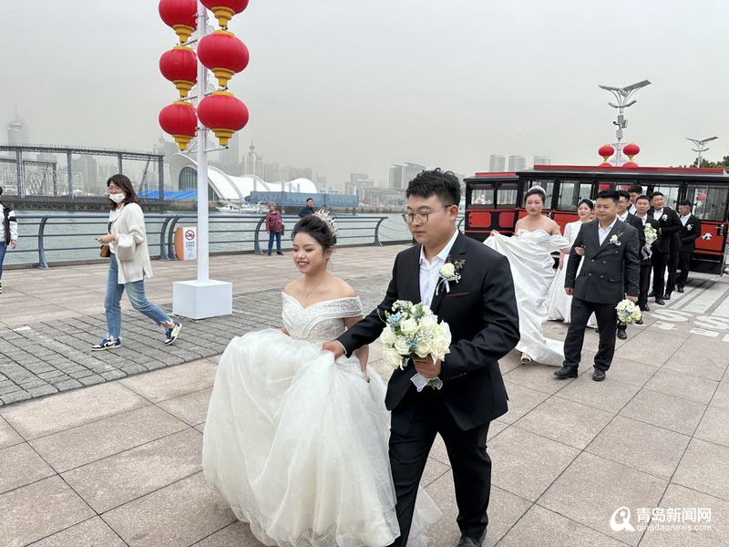 8對新人在青島復(fù)古鐺鐺車中一起巡游青島最美景色,向這座承載著無數(shù)建筑人青春的城市表達最深沉的敬意,也讓這座城市刻印下人生中最美好的回憶。潔白的婚紗、甜蜜的笑靨使整個車隊成為歡樂的海洋,歡笑聲、快門聲交織匯聚,譜寫著愛的進行曲,有海有山有愛與自由,有你與溫柔,偶遇巡游的路人們也紛紛駐足揮手,為新人們送上一份真摯的祝福。
