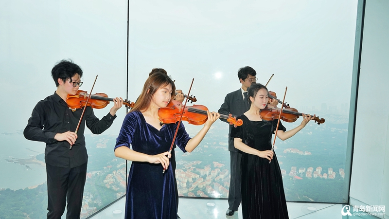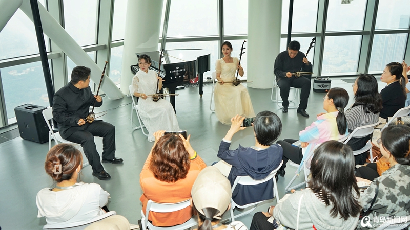 隨后,科技工作者走進了代表市南區時尚經濟發展高度的城市綜合體——海天中心,云端覽春色、聽國潮、看展覽,領域青島第一高樓的時尚魅力。