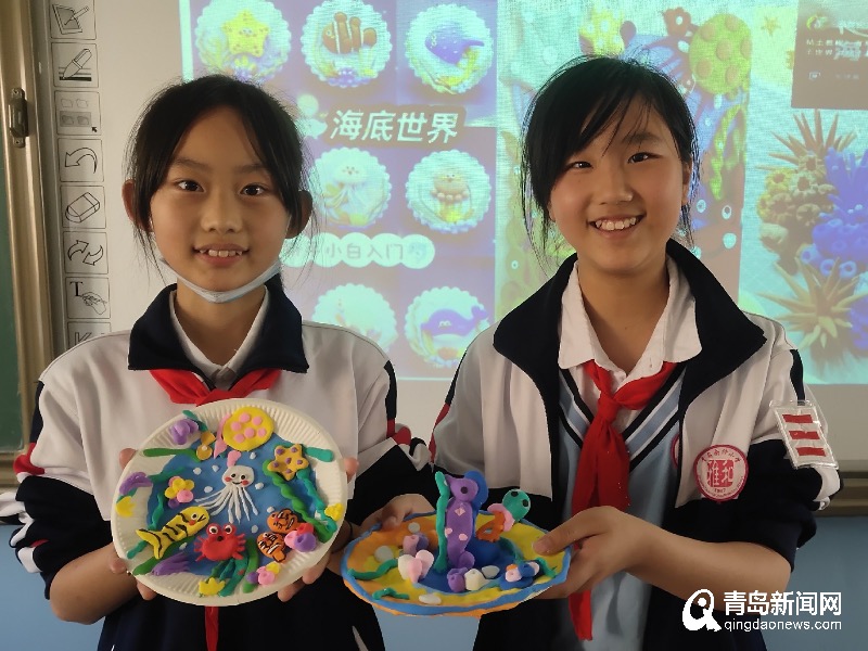 隨后在校內,師生深入研究各學科中有關海洋主題的課程資源和知識,不同學科的老師們進行溝通研討、制定教學方案。老師們群策群力,盡可能為同學們提供多樣的學習內容——音樂老師與同學們一些尋找并學唱海洋題材的歌曲、觀看《海底總動員》等海洋世界的影視片、進行模仿表演電影配音等;美術老師帶領同學認識海洋的各種魚類貝類、開展陶藝手工制作和保護海洋生物的繪畫創作;英語老師帶孩子了解全球沿海國家和特色海洋城市、制作英語推介手抄報進行展覽;數學老師則運用數學知識,帶學生學習測量中國海岸線,感受祖國海域的幅員遼闊……從構思作品、到設計作品、動手制作,每個學生都是干勁十足、信心百倍,收獲滿滿!