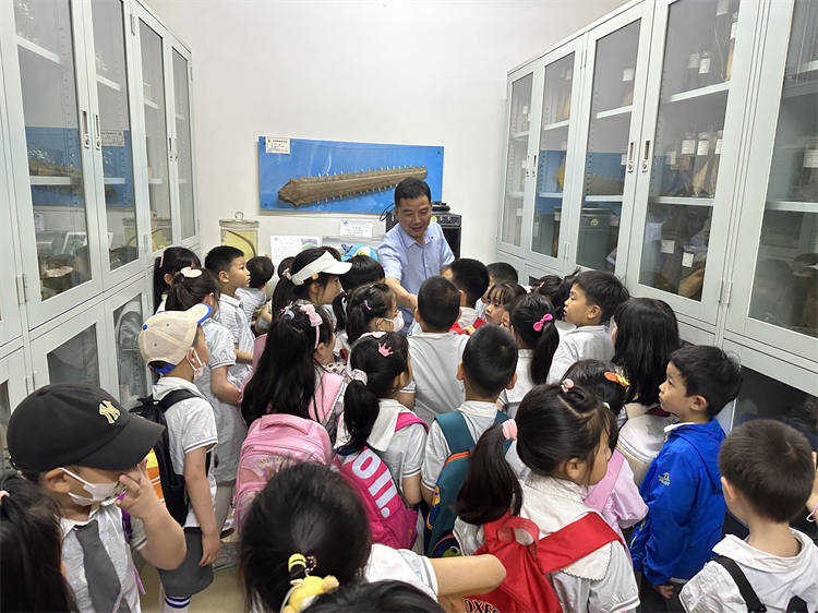 大班小朋友來到了海洋生物標(biāo)本館。該館是目前國內(nèi)規(guī)模最大、亞洲館藏量最豐富的標(biāo)本館。進(jìn)入標(biāo)本館,小朋友們就被這里豐富的物種所驚艷,帝王蟹,巨型章魚,巨型龍蝦……各種類型的珍貴海洋生物標(biāo)本吸引著大家探索的目光,小朋友在展館中與海洋生物親密接觸,身臨其境感受著海洋的豐富多彩。