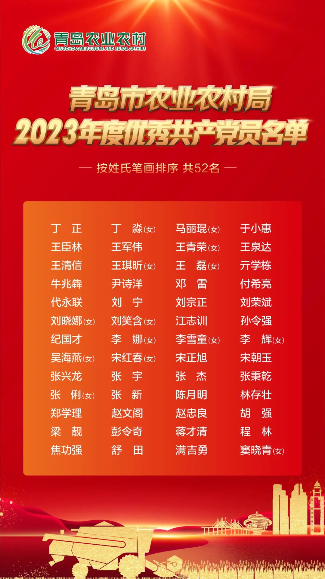 表彰大會在雄壯的國歌聲中拉開帷幕。會上,局黨組成員、副局長郝曙光宣讀《中共青島市農業農村局黨組關于表彰2023年度優秀共產黨員的決定》,52名同志獲得局系統“優秀共產黨員”稱號。