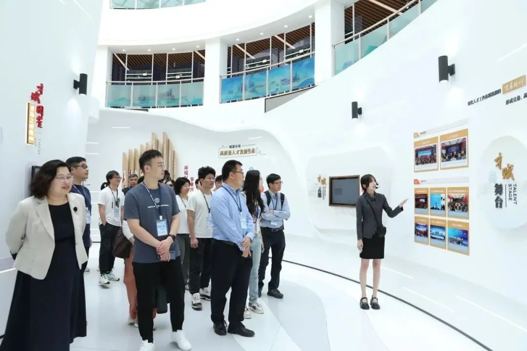 現場,來自香港教授博士青島行參訪團的30名青年才俊齊聚島城,參觀了青島賦能中心人才工作展廳,聆聽了青島市、嶗山區、西海岸新區人才環境與人才政策介紹,積極尋找自身發展與青島脈搏的契合點,尋求更大發展。香港教授博士團首先參觀了青島人才賦能中心人才工作展廳,在青島人才發展集團講解員帶領下,深入了解了青島市人才工作的歷史脈絡、人才政策、服務事項、產才融合發展環境、資本賦能人才發展等內容,對我市擁抱人才、禮遇人才、賦能人才的人才工作理念和生態表示高度認同。