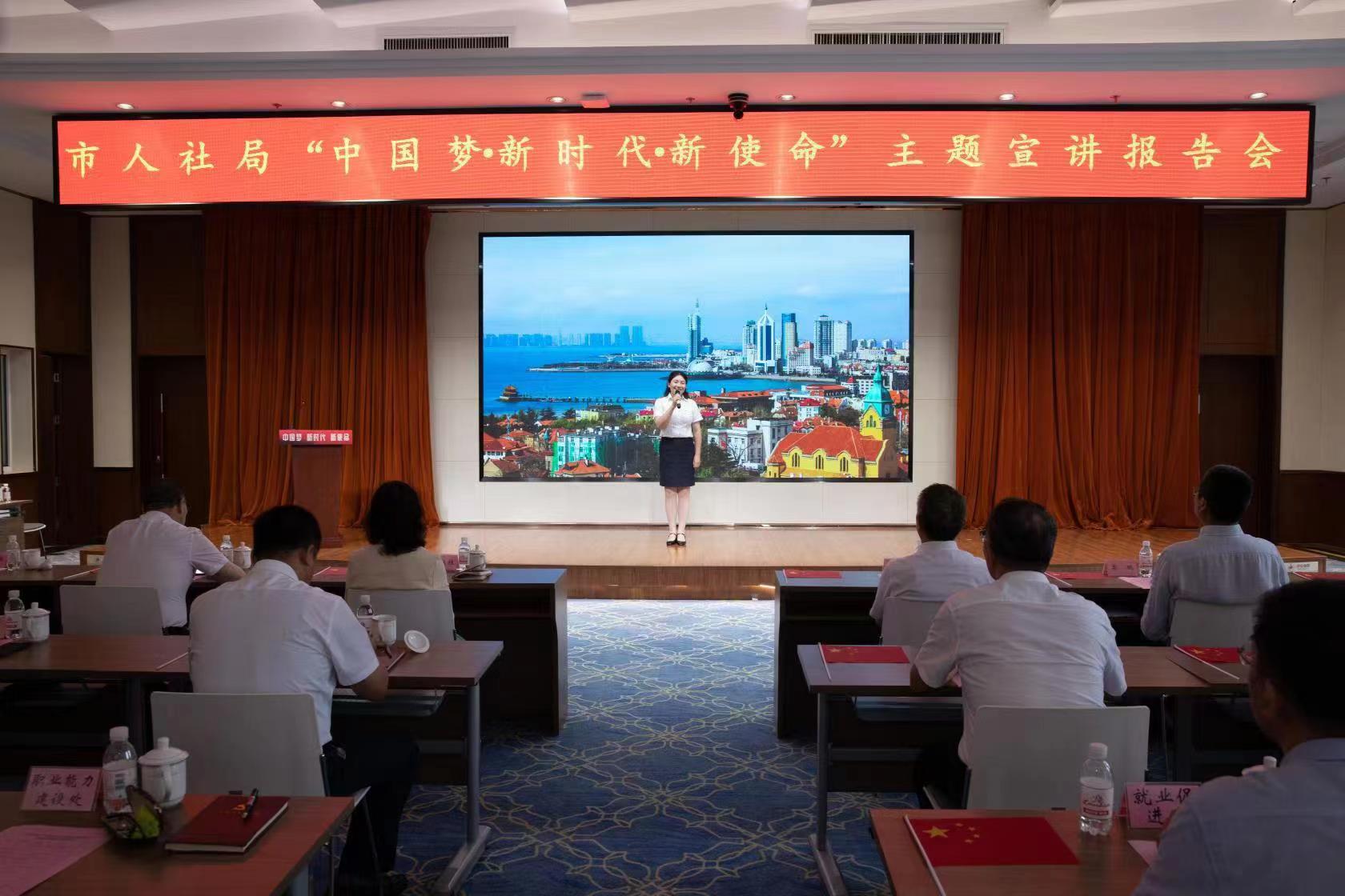 報告會上,來自青島市人社局機關及局屬單位的黨員干部代表傾情宣講,全面展示全市人社系統發揮職能優勢、落實主責主業,矢志推進新時代人力資源社會保障事業高質量發展的改革創新案例;集中宣講了全局黨員干部踐行以人民為中心的發展思想,守初心、擔使命、辦實事的暖心故事和立足崗位、敬業奉獻的先進事跡。