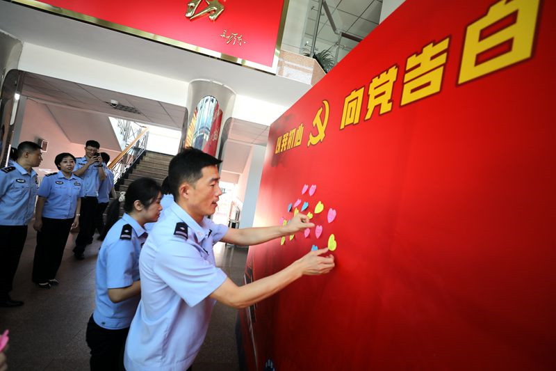 二是向黨表白抒情懷。組織黨員通過小視頻、小貼紙、小賀卡等形式,表達愛黨、為黨、護黨之情。開展“以我初心向黨表白”活動,黨員民警紛紛在留言板上寫下對黨的深情厚意,抒發對黨和祖國的美好祝愿。通過微視頻、新媒體課件等形式,講好“我和我的支部”故事,分享感悟、交流經驗、凝聚共識,營造“一家人、一條心、一起拼、一起贏”濃厚氛圍。
