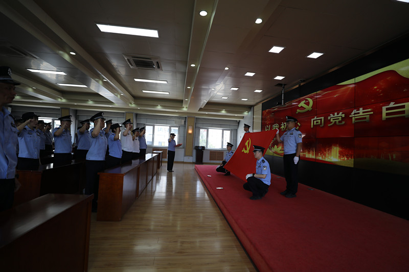四是重溫誓詞聚警心。全體黨員面對黨旗進行莊嚴宣誓,重溫誓詞、銘記初心,表達了不忘初心、牢記使命的信念和決心,不斷激勵廣大黨員民警職工賡續紅色基因、牢記第一身份、勇于擔當作為。