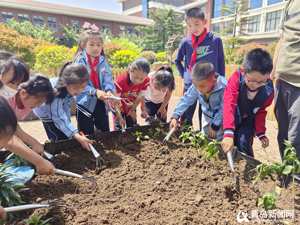 城陽區紅島街道中心小學從2022年初至今進行垃圾分類-廚余落葉堆肥-生態種植實踐探索已經有3個學期,建成了200多平方米的校園垃圾分類廚余落葉堆肥站,實現了廚余就地資源化利用。專家們應邀來到校園廚余落葉堆肥站,看見四個不銹鋼堆肥箱里都有不少棕色落葉。堆肥項目負責人肖娜老師如數家珍地介紹說,她帶著小學生們組建了“小小堆肥師”團隊,學生們形象地起名《我們一起來做“大地漢堡”》課,課程打破了傳統意義上的課堂教學模式,將學習主戰場帶到戶外,與藍天白云相隨,以花草樹木為伴,沐浴著陽光,學習著新知,上了一堂與眾不同的勞動課。課上,從垃圾分類知識引入開始,從廚余堆肥的原料、原理、意義、方法步驟等全方位地進行講解,隨后,又讓“小小堆肥師”團隊的隊員們參與堆料配比、測溫、測高、記錄、翻堆、篩肥、出肥等全過程,在這里上真正的勞動課和自然觀察課,學生們的動手能力大幅提升,真真切切地感受和理解垃圾分類自然循環的意義。