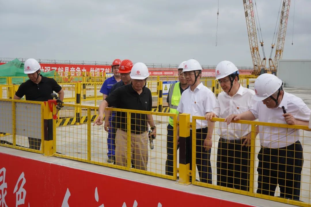 會前,大家在項目現場了解施工進度、施工難點、創新技術等,實地感受市直企業扛牢經濟責任、政治責任、社會責任,與城市同向發展、共融發展取得的成效。