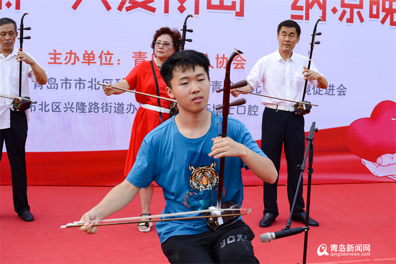 伴隨著歡快的鼓點,晚會在非洲鼓表演《好日子》中拉開序幕,歌曲、舞蹈、曲藝、器樂演奏等等豐富多彩的節(jié)目讓臺下的觀眾仿佛忘記了夏日炎熱。其中,二胡齊奏《青島》,表達(dá)了對島城的熱愛之情,讓在場的觀眾沉浸其中,深受感染;藏族舞《次真拉姆》,用舞蹈的形式祝福偉大祖國,謳歌紅色經(jīng)典,展現(xiàn)新時代風(fēng)貌;評書《月唐演義》引得大家連連叫好;《美麗的心情》、《我的九寨》《聽聞遠(yuǎn)方有你》《我愛你塞北的雪》《爸爸的話》《花橋流水》《紅塵情歌》等歌唱節(jié)目,以及二胡獨奏《戰(zhàn)馬奔騰》、口琴獨奏《站在草原望北京》等節(jié)目,也得到了觀眾陣陣掌聲;歌舞《中國龍》將整場晚會推向了高潮;隨著《我和我的祖國》的音樂響起,晚會在演員們的齊聲合唱中落下帷幕。