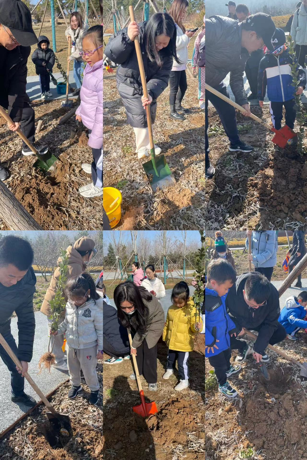 同學(xué)們有序地挖坑,栽苗,培土,澆水……一雙雙小手不停的忙碌著,每一個(gè)動(dòng)作都飽含著對(duì)小樹的呵護(hù)。雖然春寒料峭,但是細(xì)小的汗珠已經(jīng)悄然滲出額頭。家長(zhǎng)們也積極投入到這次活動(dòng)中,大手拉小手一起種下的每一棵樹苗既是對(duì)綠色生態(tài)的期待,也是對(duì)親情延綿的祝愿。