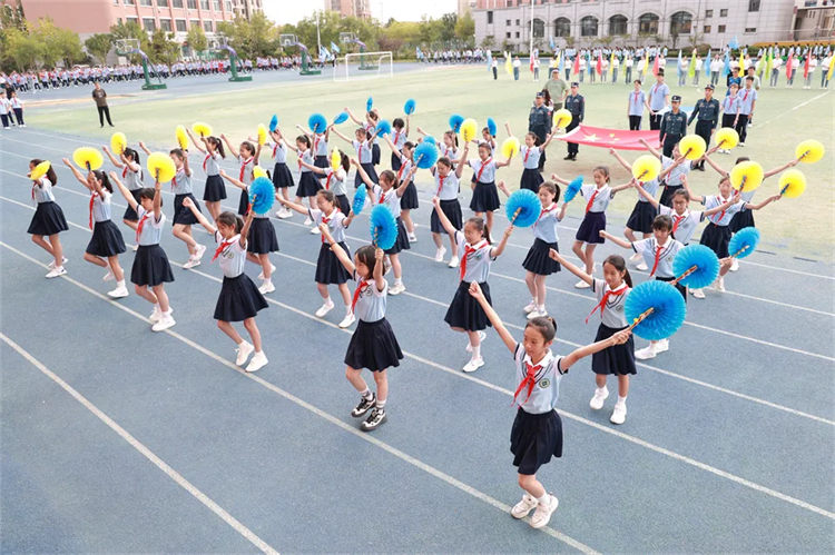 童心獻祖國運動展風采銜接和畢業學段舉辦了精彩的田徑比賽暨學校體育節開幕式,旨在通過體育的力量,激發學生的愛國情懷,展現新時代青少年的蓬勃朝氣與青春風采,同時深化“體教融合至善育人”的教育理念,為培養德智體美勞全面發展的社會主義建設者和接班人貢獻力量。晨光初照,校園內彩旗飄揚,歡聲笑語匯聚成海。全校師生以飽滿的熱情和昂揚的斗志,共同見證了這一激動人心的時刻。各班級精心準備的節目輪番上演,將體育與藝術完美融合,展現了童心的純真與活力。從動感十足的啦啦操表演,到創意無限的體育情景劇;從整齊劃一的團體操展示,到活力四射的籃球技巧秀……每一個節目都凝聚了同學們的辛勤汗水與智慧結晶,不僅展示了他們的體育技能,更體現了團結協作、勇于拼搏的體育精神。