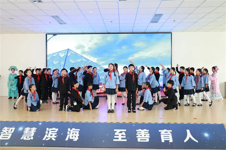 五年級的同學在舞臺上自信滿滿,清脆的童聲和曼妙的琴音不絕于耳,精彩的表演中洋溢著對家國的熱愛和祝福。精彩絕倫的表演,展現出了各班同學們良好的藝術素養和審美水平,充分體現了“班班有特色”的藝術氛圍,展現了我校“十個一”工作的高質量推進。在家校合力的共同努力下,各班同學以鏗鏘有力的吟誦來贊頌祖國偉大、壯麗、富強的面貌,以清脆嘹亮的歌聲抒發中華少年的愛國情懷,為我們帶來了一場視覺與聽覺的盛宴。
