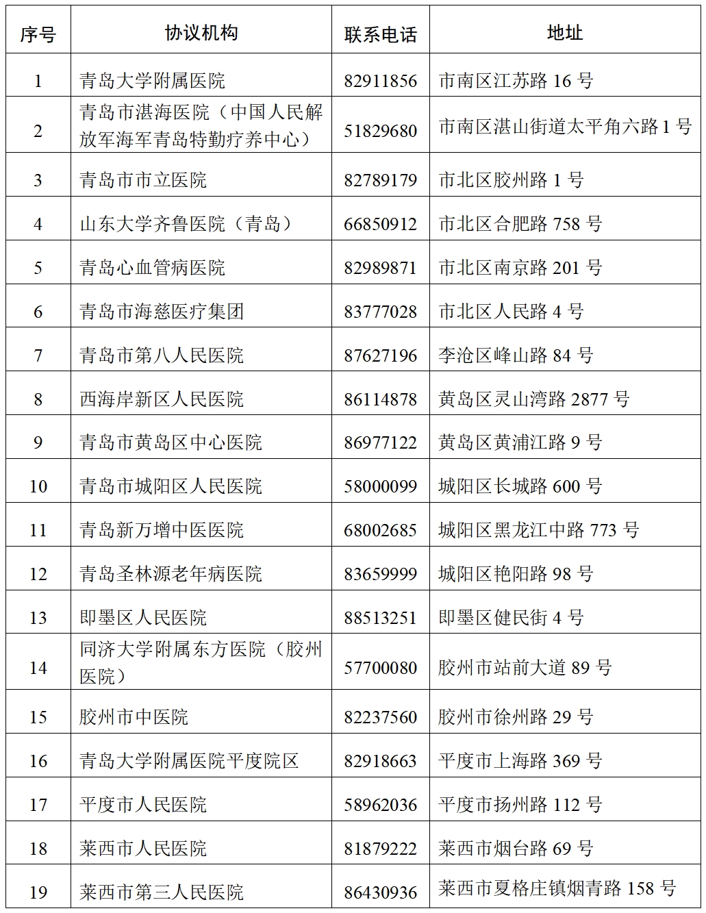 青島市工傷康復協議機構名單