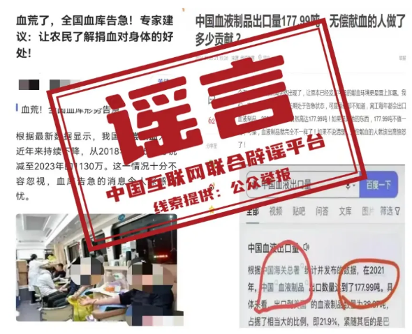 2024年2月,個別自媒體發(fā)出“無償獻血人數(shù)大幅下降,無償獻血用于血液制品出口”的不實言論,利用全社會對公益事業(yè)的關(guān)注和信息不對稱誤導公眾,故意抹黑我無償獻血政策,影響血液采集正常秩序,引發(fā)公眾對無償獻血的誤解。一些別有用心之人惡意編造謠言“我國社保基金全都交給外資機構(gòu)管理”,抓住社保基金管理中的部分正常合作進行夸大和錯誤解讀,以偏概全、歪曲事實,引發(fā)公眾對社保體系的擔憂和恐慌。還有一些自媒體夸大其詞、虛構(gòu)數(shù)據(jù),捏造謠言“重慶80%工廠暫停招聘”,干擾勞動力市場正常秩序,影響地區(qū)經(jīng)濟發(fā)展。所謂“‘網(wǎng)信辦’來電要求群眾協(xié)助調(diào)查”則實為詐騙分子冒充權(quán)威機構(gòu)行騙,嚴重損害政府部門的公信力。