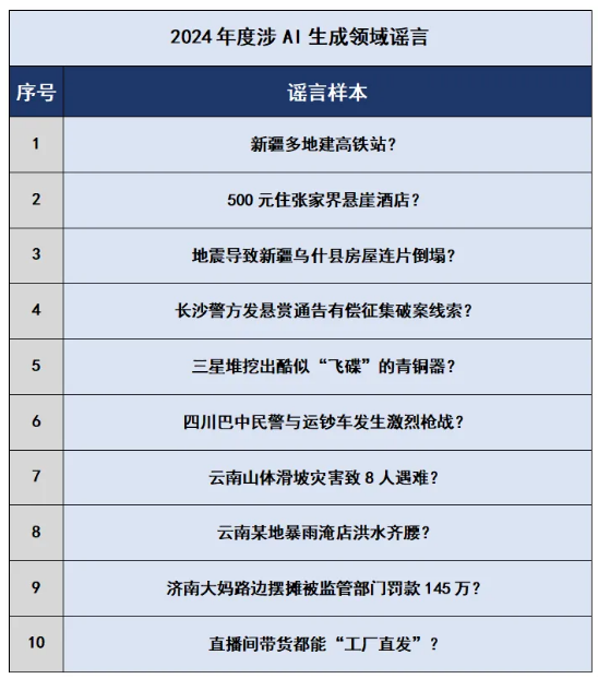 2024年初,“新疆多地建高鐵站”虛假短視頻在網(wǎng)上流傳,此類視頻由軟件智能合成,用戶只需使用指定視頻模板、手動替換涉本人家鄉(xiāng)相關(guān)地點的文字即可生成新視頻,利用人們對家鄉(xiāng)基礎(chǔ)設(shè)施建設(shè)情況的關(guān)注而大肆傳播,誤導公眾。還有個別網(wǎng)民為獲取流量和不當利益,利用AI軟件蓄意歪曲“交警請占道停留的運鈔車駛離”的事實,編造謠言“四川巴中民警與運鈔車發(fā)生激烈槍戰(zhàn)”,造成公眾恐慌和誤解。此外,謠言“濟南大媽路邊擺攤被監(jiān)管部門罰款145萬”實為AI工具生成的虛假文章,大肆消費公眾的同情心博取眼球,引發(fā)大范圍傳播,造成不良社會影響,相關(guān)違法人員被公安機關(guān)依法行政拘留。“云南山體滑坡災害致8人遇難”“地震導致新疆烏什縣房屋連片倒塌”“云南某地暴雨淹店洪水齊腰”等謠言則純屬子虛烏有,均為AI特效炮制的虛假視頻,利用公眾對災難事件的重視編造傷亡情況,制造恐慌情緒,擾亂社會秩序。