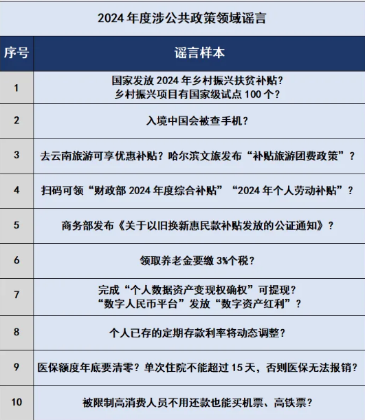 2024年3月,有不法分子冒用國家機關(guān)名義,假稱“國家發(fā)放2024年鄉(xiāng)村振興扶貧補貼”“鄉(xiāng)村振興項目有國家級試點100個”,以高額返利為誘餌,引誘大量不明真相的群眾加入所謂的各類“基金會”和“項目”,巧立名目騙取錢財。還有自媒體從公開發(fā)布的政策信息中摘取碎片化信息,斷章取義,對政策歪曲解讀。如2024年10月,個別自媒體故意混淆“個人養(yǎng)老金”與“基本養(yǎng)老金”的概念,傳播“領(lǐng)取養(yǎng)老金要繳3%個稅”“養(yǎng)老金個稅起征點為5000元”等不實信息,引發(fā)公眾誤解。此外,在《國家安全機關(guān)行政執(zhí)法程序規(guī)定》和《國家安全機關(guān)辦理刑事案件程序規(guī)定》公布之際,一些別有用心之人借機造謠抹黑、搬弄是非,大肆炮制所謂“入境中國都會被查手機”的謠言,荒謬至極。