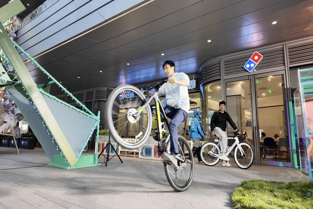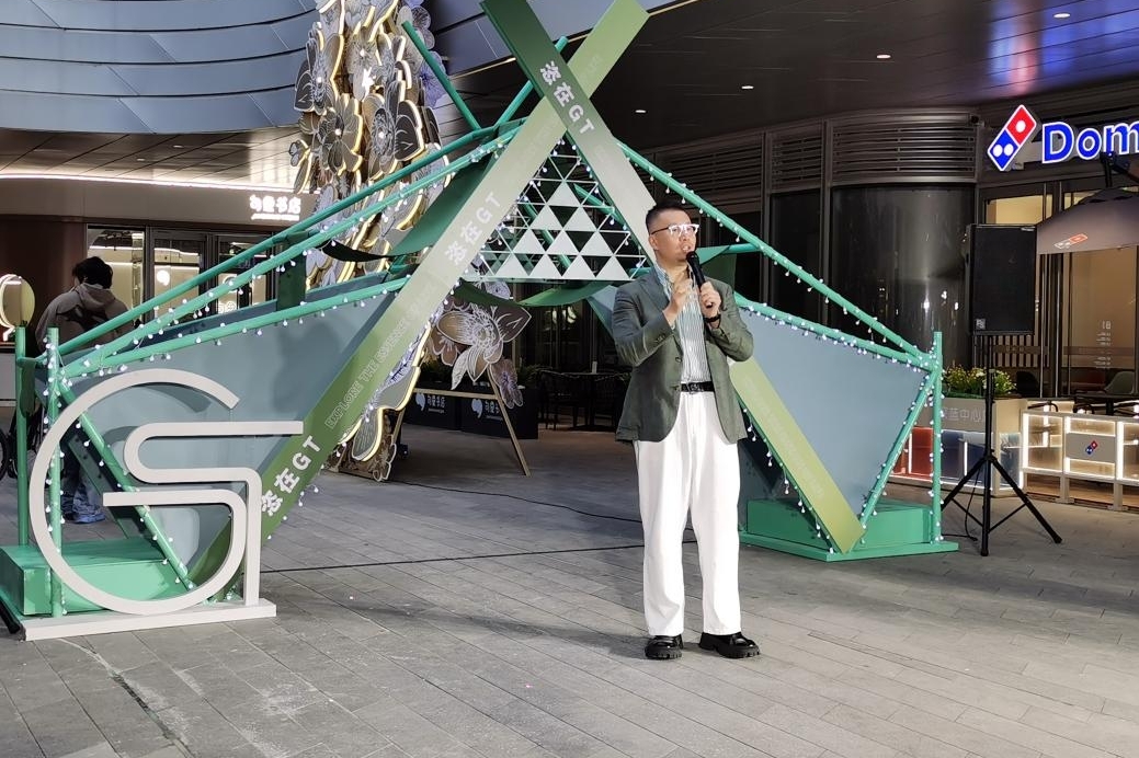 在輕快的音樂聲中,綠城商管青島公司總經理李珍女士以騎行的方式緩緩駛入廣場。車輪碾過春日的軌跡,傳遞恣在GT的生活理念,開啟青島騎行友好、寵物友好、運動友好的全新生活方式。