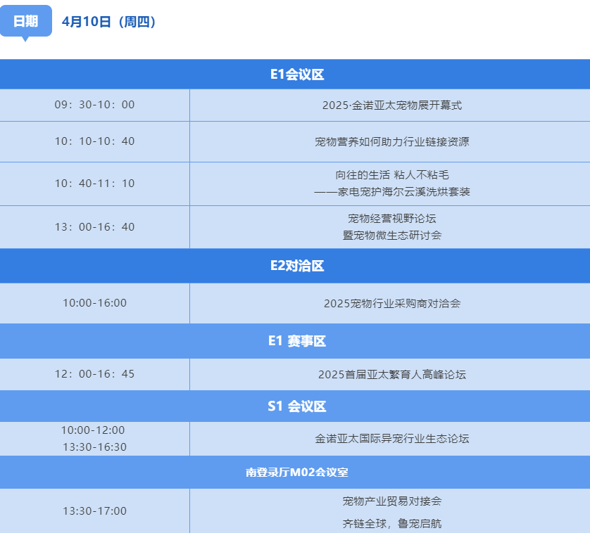 展會期間將舉辦10+場專業論壇與會議,涵蓋跨境電商、寵物美容、微生態技術等熱點議題。亮點包括: