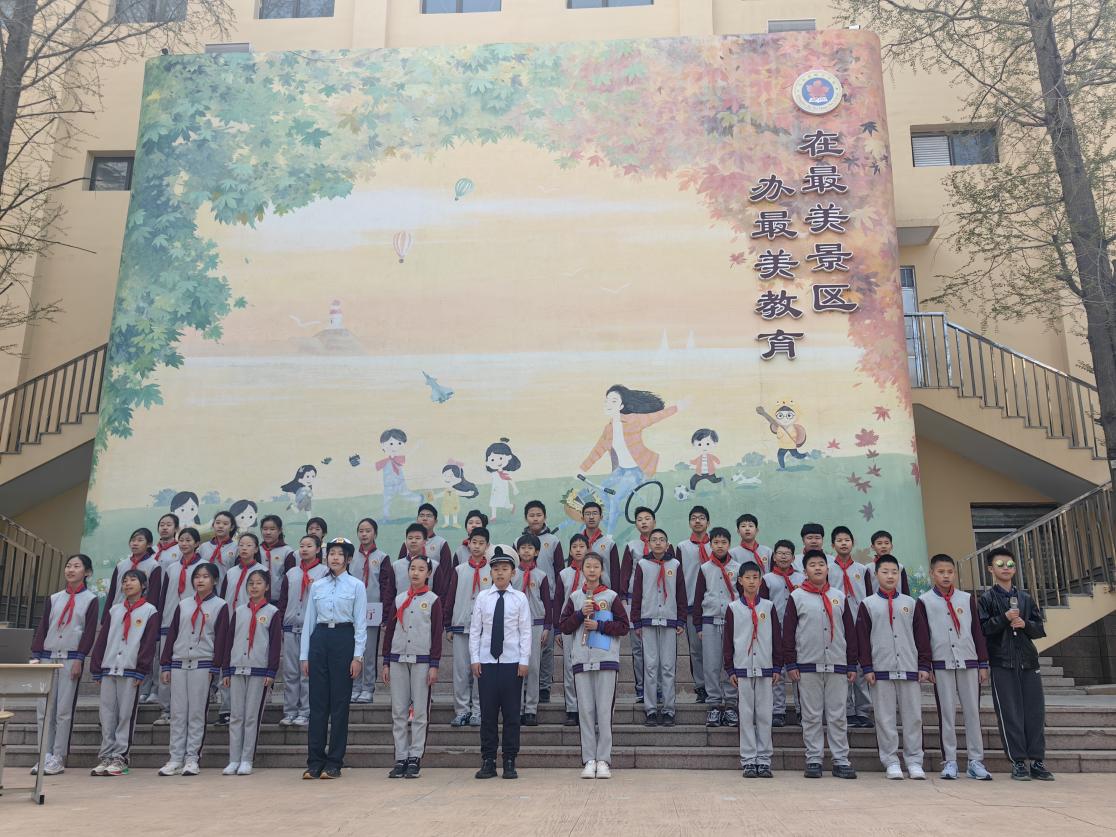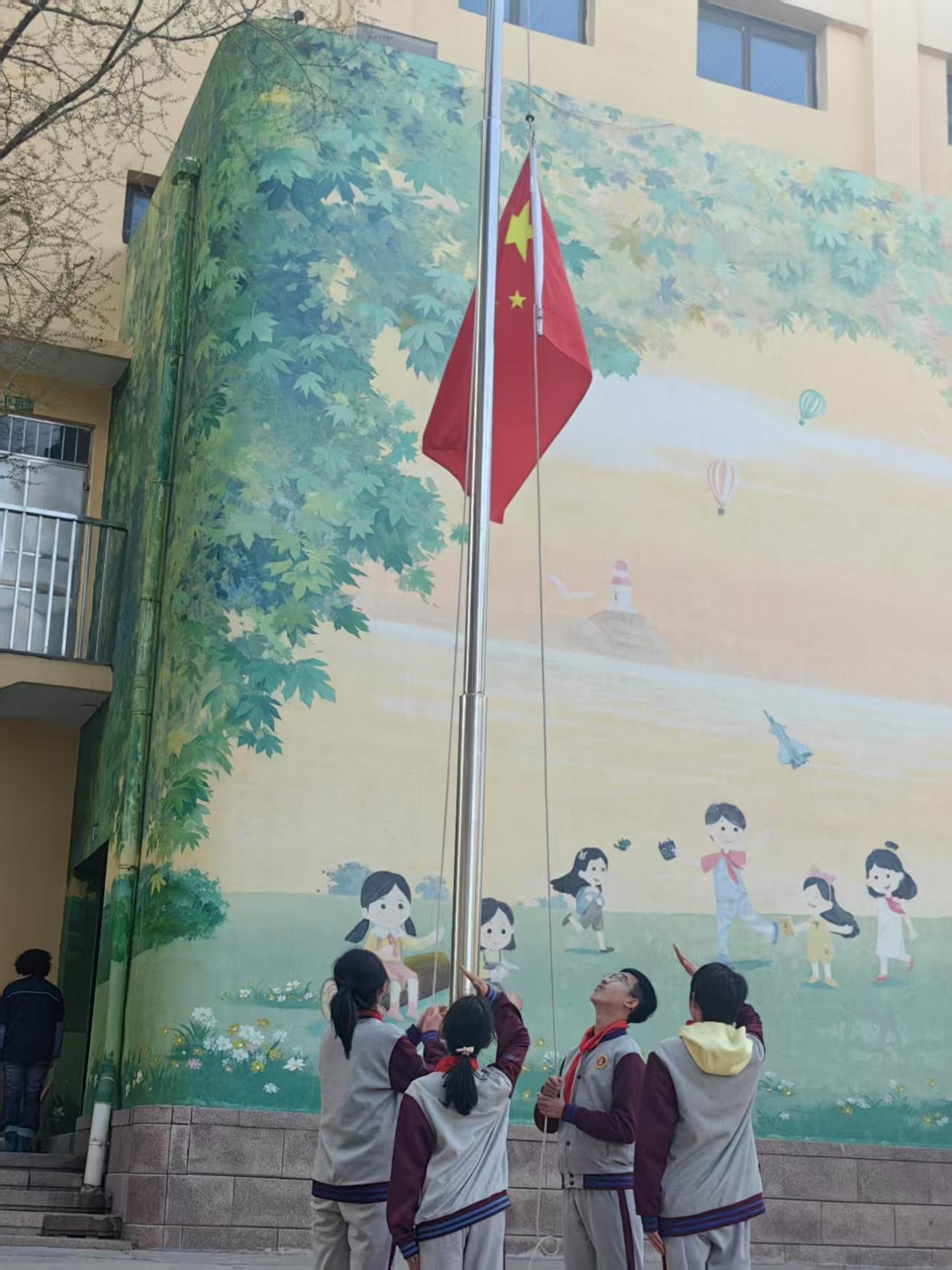 8時10分,升旗儀式在六年級5班武書有同學的主持下拉開帷幕。在雄壯的國歌聲中,全體少先隊員莊嚴敬禮,一年級新生凝視國旗行注目禮,鮮艷的五星紅旗在晨風中冉冉升起。學生指揮姜星宇帶領全校師生高唱國歌與校歌,激昂旋律回蕩在校園上空。郭萬隆同學向我們介紹了四位優秀的升旗手,分別是劉禹彤、張曼琳、安孟浠、任越琪。