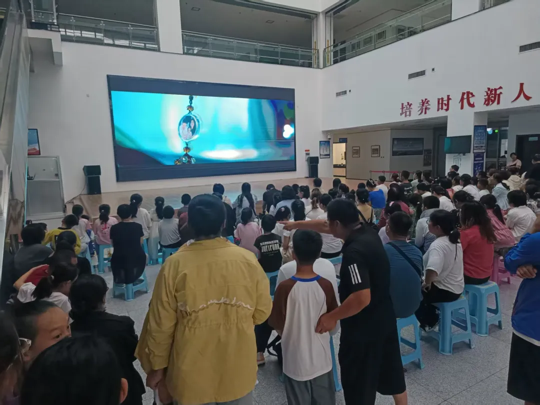 當晚19:00,文化中心一樓大廳座無虛席。影片中黃渤飾演的父親為兒子升學“瘋狂內卷”的情節,讓許多家長感同身受。當劇情發展到父子相互理解、回歸教育本心時,不少觀眾悄悄抹淚。許多孩子主動握住父母的手,畫面溫馨。