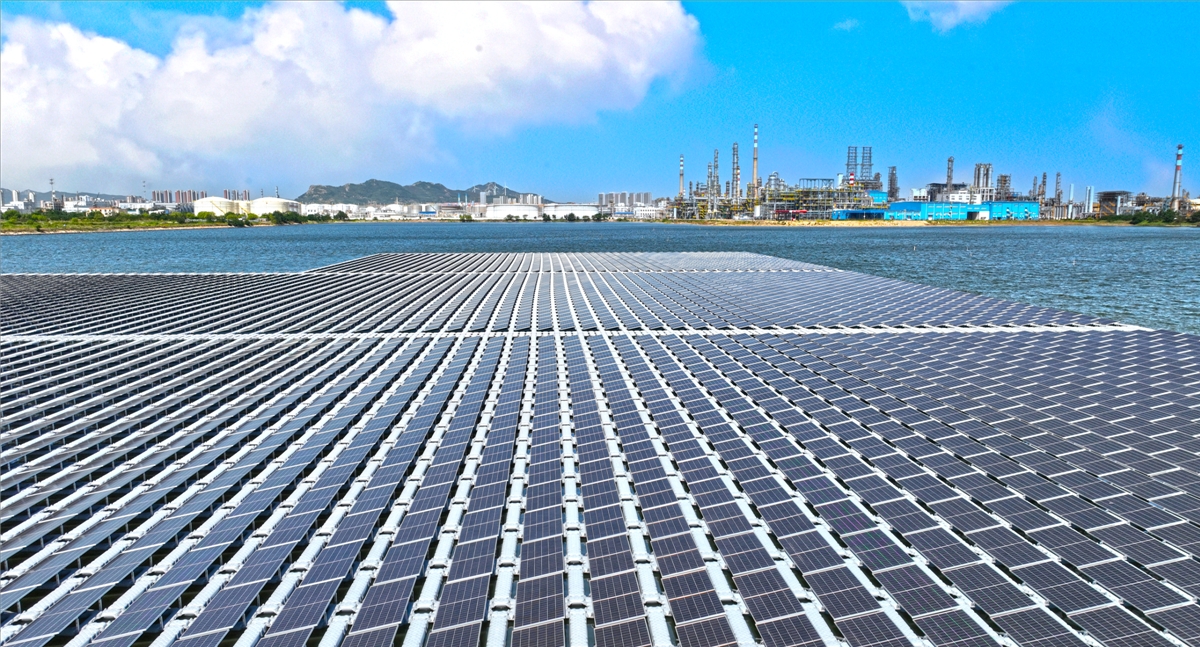 青島煉化漂浮式水上光伏電站(劉強(qiáng) 拍攝)