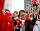 烏魯木齊市民熱情迎祥云 標(biāo)語(yǔ)情系四川地震災(zāi)區(qū)同胞